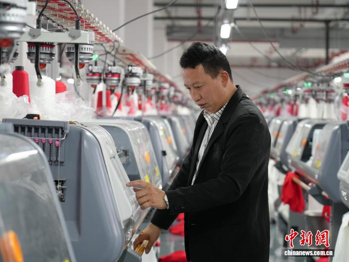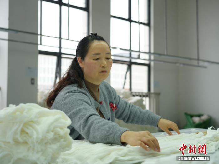 图为3月31日,工人正在纺织企业车间的消费线上功课。石小杰 摄